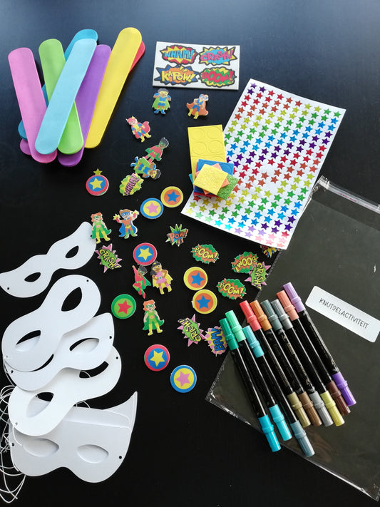 Knutselactiviteit superhelden maskers en klaparmbanden